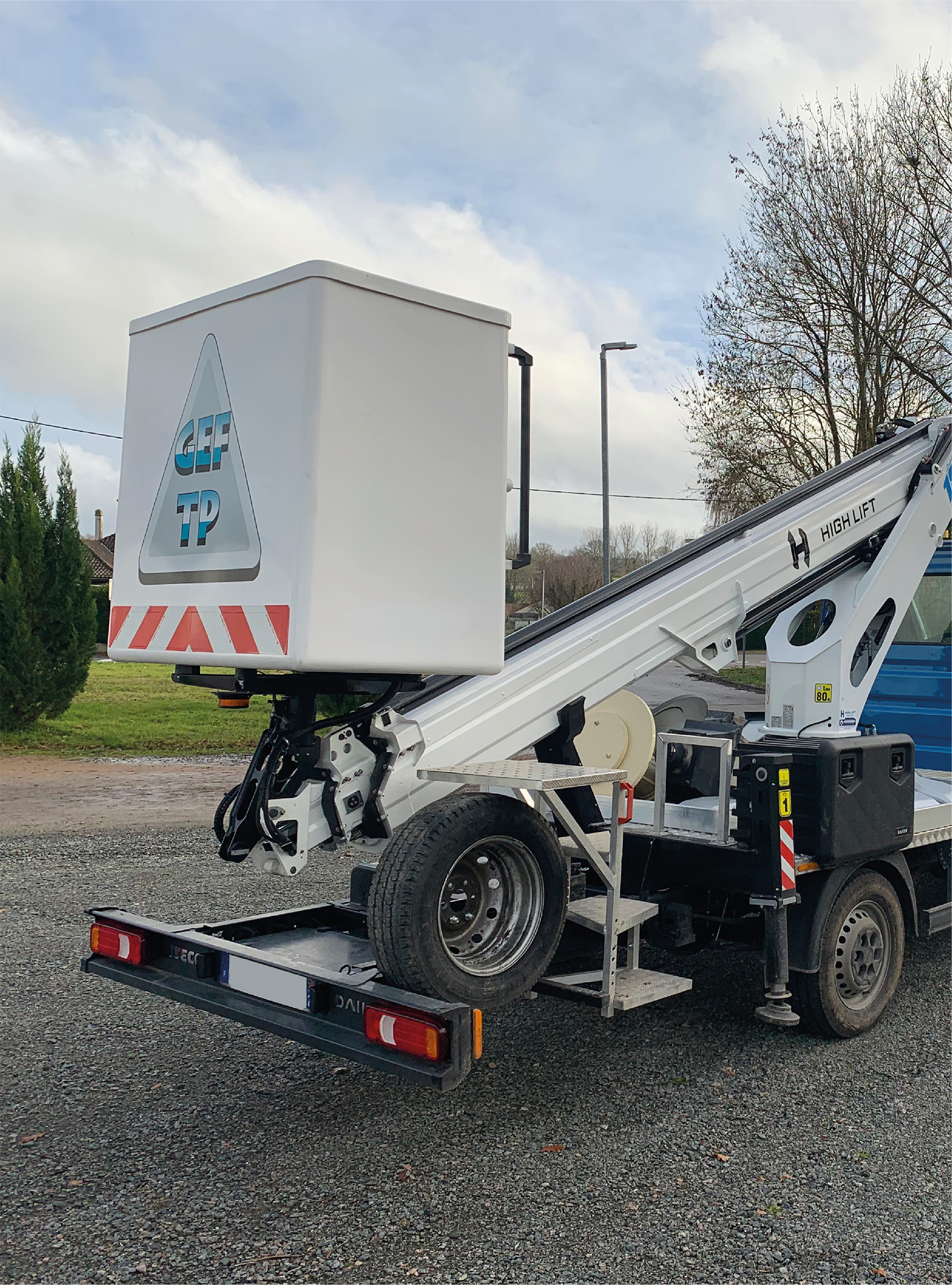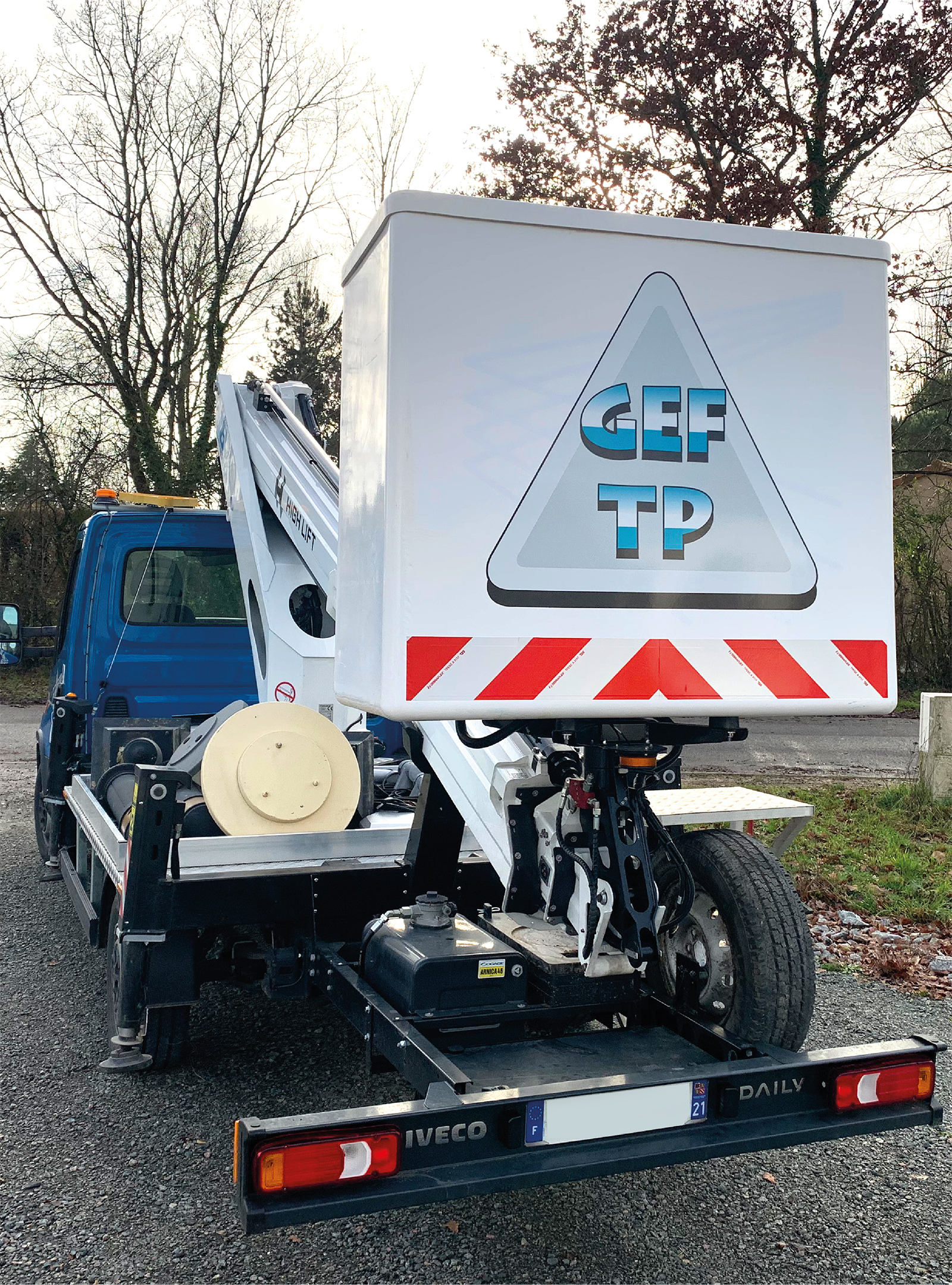 Pose d'adhésifs sur la nacelle pour l'entreprise "GEF TP".